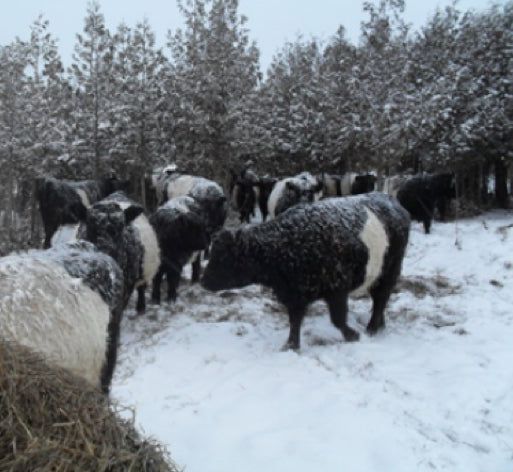Belted Galloway's are quiet, easy calving and have the ability to withstand harsh weather conditions. They are one of the few breeds of cattle with two layers of hair, which provides an effective natural insulation. The Belted Galloway originated in Scotland and dates back to the 11th century. There is much speculation regarding the breed’s origin. The breed may be a cross between a Black Galloway and Dutch Belted.